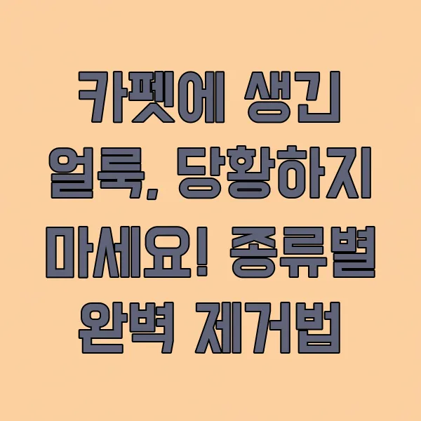 집안의 포근함을 더해주는 카펫. 그런데 아이들이나 반려동물이 있는 집이라면, 피할 수 없는 것이 바로 '얼룩'이거든요. 갑자기 쏟은 커피 자국이나 아이가 묻혀온 음식물 얼룩을 보면 정말 난감할 때가 많죠. 저도 처음에 카펫에 얼룩이 생겼을 때, 괜히 만지기만 하면 더 번질까 봐 어쩔 줄 몰라 했었거든요. 하지만 몇 가지 방법만 알면, 당황하지 않고 얼룩을 말끔하게 지울 수 있답니다. 오늘 제가 카펫 얼룩 종류별로 확실하게 제거하는 방법들을 꼼꼼하게 알려드릴게요.